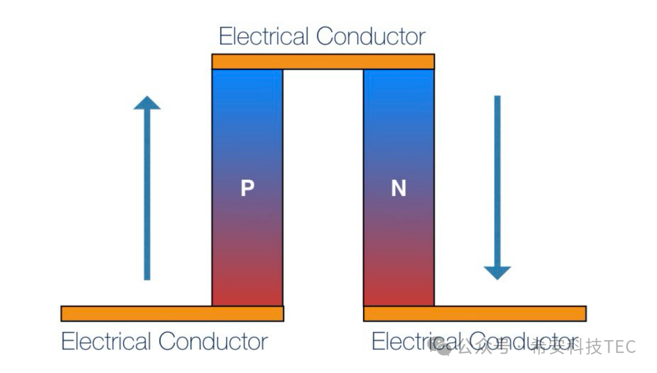 కింది చిత్రంలో చూపిన విధంగా థర్మోకపుల్ యొక్క రెండు చివరలకు థర్మల్ కండక్టర్లు జోడించబడతాయి: పూర్తి TEC ఏర్పడుతుంది. TEC శక్తితో ఉన్నప్పుడు, ఎగువ ఉపరితలం వేడిని గ్రహిస్తుంది, దీనిని కోల్డ్ ఎండ్ అని పిలుస్తారు మరియు గ్రహించిన వేడి Q0. దిగువ ఉపరితలం వేడిని విడుదల చేస్తుంది మరియు వేడి ఉపరితలం అంటారు, విడుదలైన వేడి Q1 ; Q1= Q0+Qtec
